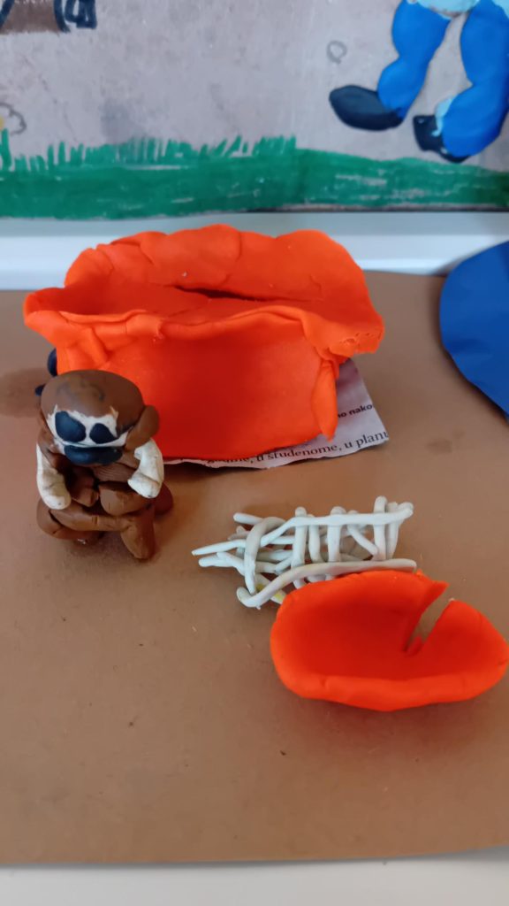 Učenicima su se bajke jako svidjele te su u skupinama ili parovima različitim likovnim tehnikama izradili motive iz pročitanih priča i napravili malu izložbu svojih radova.